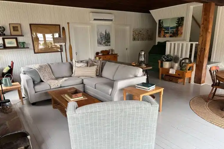 375 Georgian Bay Water is a beautifully maintained cottage in the legacy Georgian Bay style with contemporary features that make holidaying truly relaxing. Offers unobstructed panoramic southwest views of the bay, the original hardwood floors, high ceilings with the original huge, by modern standards, rough hewn beams. five bedrooms, a large screened in porch, perfect for entertaining . Comfortable new furniture for relaxing or reading that book .The cottage is surrounded on three sides with decks for sun worshippers and barbecuing. It sits on 11.5 acres with 1500 ft of shoreline that bends around the mouth of the Garden Channel, an undisturbed natural paradise for swimming, bird watching or quiet paddling. The contemporary features include, double hung windows; solar panels, backup gas-powered generator, a writers studio by the water. Above all, its private. The cottage is set back from the water on a height of land that allows for its expansive views but close enough to provide easy access to the two new docks.