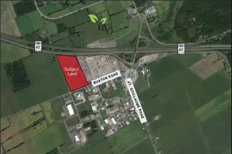 Very nice 30 acre industrial/commercial lot within the City of Ottawa boundary and with great frontage and visibility on Hwy 417, just west of the St. Guillaume Road interchange. The RC – Rural Commercial Zone permits a broad range of uses including retail, automotive, hotel and warehouse. This property is to the west of and immediately adjacent to the Adesa Auto Auction facility on Burton Road.