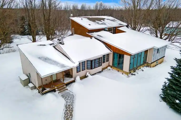 Escape to your own private sanctuary. This beautiful 4-bedroom, 3 bathroom bungaloft rests on 150 acres of land complete with barn. It perfectly blends rustic charm with modern comfort and offerhis endless opportunities for outdoor adventures and peaceful living.This unique bungaloft design features ample space for family and guests offering over 3500 sq ft of finished living space. The main floor boasts a family room with soaring vaulted, beamed ceilings, a cozy wood burning fireplace, and expansive windows that invite natural light. Theres an eat in kitchen, an oversized living & dining area, a huge solarium, 3 bedrooms, 2 bathrooms and a laundry room but wait, theres more. The upper-level primary suite is a private retreat, complete with a unique ensuite (requires completion) a w/I closet, and a walk-out deck for enjoying your morning coffee or stargazing at night. Hardwood floors, in-floor zoned heating, and walk-in closets in all the bedrooms add to the comfort and functionality of the home. Need more room? The unfinished basement with a walk-up entrance offers potential for an in-law suite or secondary dwelling.Explore your very own network of trails for hiking, ATV riding, snowmobiling, and horseback riding. With lush hardwood forests, a tranquil creek for fishing, and open spaces for hunting, the recreational possibilities are endless.Spend warm evenings on the spacious deck, complete with 2 ornamental ponds, waterfalls, a beautiful gazebo all surrounded by gorgeous perennial gardens.Located just minutes from Orangeville and Shelburne where all of your amenities are accessible yet tucked away for ultimate privacy and tranquility. Nature, hobby farm, gardens…just imagine! Endless possibilities.