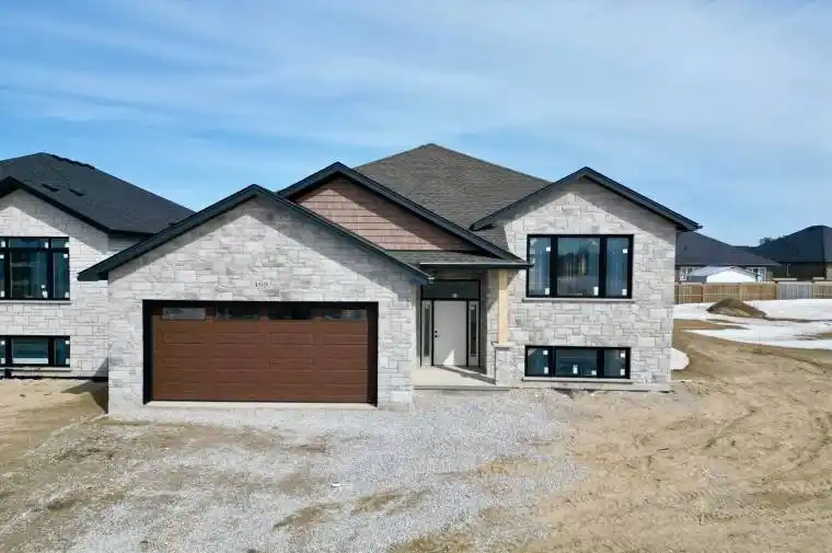 This raised bungalow at 469 Northport Drive is currently being finished on the outside; and has 2 + 2 bedrooms and 3 full baths. The main floor is 1397 sqft; with an open concept living room, dining area and kitchen through the center that walks out to a partially covered deck measuring 12 x 24. The entire main floor with be hardwood and ceramic with Quartz counter tops in the kitchen, gas fireplace in the great room and tiled shower in the ensuite. The basement features a family room, 2 bedrooms, 3pc bath and laundry room with access to the 2 car garage. HST is including in the asking price provided the Buyer qualifies for the rebate and assigns it to the Builder on closing. Prices subject to change without notice.