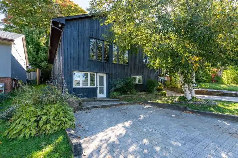 This spacious warm and inviting family home has a bonus separate unit with 2 + den lower level walk. Nestled in the heart of downtown Huntsville with a walking score of 10 to all amenities including the mall in this prime sought after area. The 4 bedroom main residence has been a beloved gathering place for family and friends for decades with a bright open concept kitchen/dining and living room surrounded by a window wall and a beautiful custom gas fireplace anchors the room. Kitchen features built in appliances and massive island for the gourmet cook to enjoy creating while still in the middle of the conversation and energy with 6 bar stools for everyone to gather. The main level also offers 3 bedrooms, one with a walkout and a main bathroom and laundry with another walk out to your private rear yard not feeling like you are in the center of town. The 2nd level boasts a large master suite including your 3 piece ensuite and separate office with a private deck. The lower level 2 + den unit has open concept living/dining/kitchen with a gas fireplace, 4pc bathroom and laundry. The current owner have had family renting the lower level for many years and now it is vacant and ready for a buyer to use it or rent it out. The Seller believes the property to be a legal non-conforming duplex when he checked with the Town of Huntsville in 1990’s. The Buyer should make inquiries to satisfy themselves as to the legality and future use of the lower level unit. The unit and main residence both have their own separate hydro meters, driveways and parking areas which are interlock brick and in great shape. The main residence enjoys a large wrap around deck plus a patio and a gazebo in the very private backyard. There are no homes behind so it does feel peaceful and removed from the bustle of downtown. This home has been enjoyed by the same family for over 30 years and offers many opportunites for a new family or as an investment. A pleasure to view!