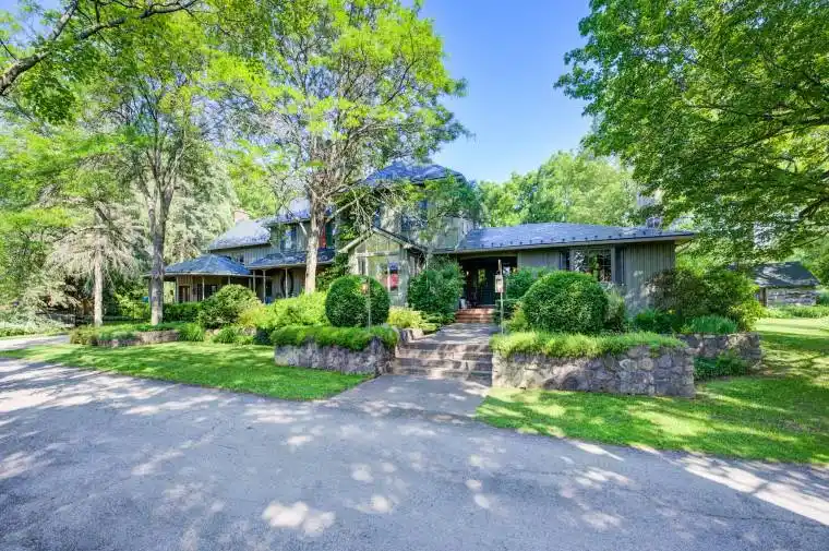 THIS BEAUTIFUL COUNTRY RETREAT AWAITS YOU AND YOUR FAMILY! Unique, enchanting and enriched with the natural beauty of the rolling landscape and an abundance of history, this country estate reveals itself in a series of wonderful surprises. The property is not only a picturesque 150 Acres with a 4867 square foot, two-storey beautifully proportioned home, it also features two mid-nineteenth-century log cabins, an in-ground pool with a private pool house, with sauna, pond, apple and pear orchard, barn with horse stalls and hay loft, large drive shed with extensive workshop and one of Ontario’s few existing stone silos converted into an artist’s studio with a deck overlooking raised gardens and a stunning view of the farm. You and your family will live on your own retreat. Join us for a walk down the majestic tree-lined laneway and open your eyes to the wonder that befalls you. The house has 4+1 bedrooms including a full guest suite with bed and sitting room with direct access to the garden and a 3pc bathroom. In the finished basement you will relax in the movie theatre and games room. The generous office space is full of light. The property encompasses aces of mature bush and managed reforestation, wetlands, walking trails, 40 acres of arable land and a seven-acre revenue producing solar panel installation. This historical family estate has been lovingly cared for by three families since 1896 when the settlers built a new house on the present site. Over the decades the house has been expanded and modernized, combining heritage with sustainability.