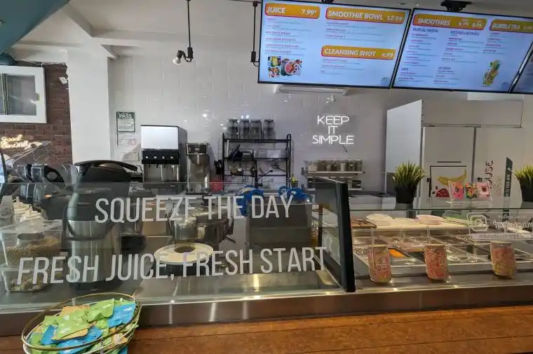 Turnkey Smoothie & Health-Focused Retail Store for Sale Prime Location Near Humber College. Seize the opportunity to own a vibrant and health-conscious retail smoothie store located on a high-traffic street in a thriving, youthful community. This business is perfectly positioned within walking distance of Humber College and surrounded by over 8 yoga and fitness studios, making it an ideal destination for health-focused students, professionals, and fitness enthusiasts. Key Highlights: Excellent Location: Busy pedestrian-friendly street with consistent foot traffic. Close proximity to multiple schools, fitness centers and Humber College campus. Modern Setup: Features a garage-style door that opens up in the summer, offering a trendy and inviting atmosphere that attracts passersby. Patio can also be placed upon permit from City. Fully Equipped: Includes a walk-in cooler, 2 chest freezers, 2 Door Cooler, Food Warmer, Conveyor Baker, Grills, Ice Maker, AC and all essential equipment to continue operations seamlessly. Flexible Use of Space: Permitted uses include smoothies, wraps, non-alcoholic beverages, coffee, bubble tea, salads, ice cream, energy bars, dessert, slushies, supplements, and health-related retail and merchandise products. Attractive Lease Terms: Current lease term runs until April 30, 2028, with a 5-year renewal option (5+5 lease).Very affordable Rent: 4098.10 Including HST and TMI Ownership Transition: Independently owned and operated. Willing to provide full training and support during transition. Open to rebranding, offering flexibility for a new owner to make it their own. This is a turnkey operation in an area with built-in demand for health and wellness offerings. Whether you’re a first-time entrepreneur or an experienced operator looking to expand, this business offers a strong foundation with plenty of growth potential. Financial details and equipment list available upon request Kindly DONOT visit the store without confirming with Realtor