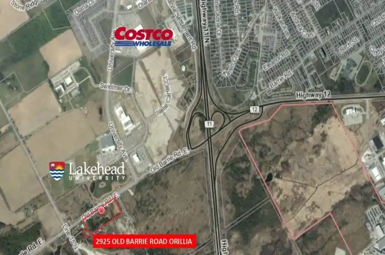 Amazing visibility of 334 ft fronting Old Barrie Rd in Orillia across Lakehead University and other major commercial developments including Costco with fast access to north and south bound lanes of Hwy 11. This 7.27 Acre Parcel has yet to see its highest and best use making it a very interesting investment opportunity in a prime location in the beautiful and fast growing city of Orillia. Industrial/Rural zoning with a very large residential home with an excellent tenant (Formerly Operated As A Group Home) featuring large rooms, 18 X 36 deck overlooking park-like rear yard. 2 add’l structures – 12′ X 48′ former school portable & larger barn. Currently serviced by well & septic. Commercial grade sprinkler system and generac system. Buyer responsible for doing their own due diligence related to details of zoning current or future specific restrictions.