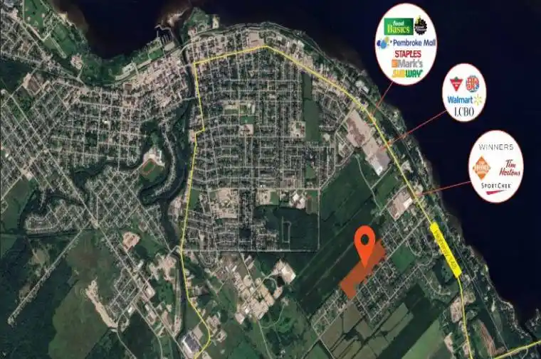 Wow…PRIME DEVELOPMENT OPPORTUNITY 25.7 ACRES IN RAPIDLY GROWING PEMBROKE! An exceptional 25.7-acre parcel of flat, table-top land is ideally positioned at 208 Drive-In Road, directly beside the proposed 884-unit residential subdivision featuring detached homes, townhomes, and high-density developments. * Zoned RES-A and supported by flexible planning policies from the Town of Pembroke, this site is designated for future residential use, offering tremendous potential for builders and developers * LOCATION HIGHLIGHTS: Ideally located just minutes from Petawawa and the Canadian Forces Base, and surrounded by newer homes, the site is within walking distance to Walmart, Winners, Home Depot, LCBO, Tim Hortons, SportChek, Subway, Staples, Marks, Pembroke Mall, Food Basics, and more * Close proximity to Algonquin College, Catholic, Public, and French schoolsall within a 45 minute drive * Residents will enjoy access to Riverside Park & Beach, Pembrokes Waterfront Boardwalk, and over 24 public parks spanning 140+ acres * Major destinations such as Algonquin Park and Bell Rapids are just over an hour away * PROPERTY FEATURES: 5 entrances from Drive-In Road and 1 entrance from Heather Street W, offering multiple access points for future development. * Two concept plans attached for reference:- (a) Development on the well & septic (b) Development on municipal water & sewer * Municipal services, including water and sewer, are nearby * Natural gas, hydro, telephone, cable, and high-speed internet are available at the lot line * Strategically located in a region with rising housing demand and lower property taxes, this is a rare and highly desirable opportunity * Opportunities like this are rare * Dont miss your chance to secure this high-potential development site!