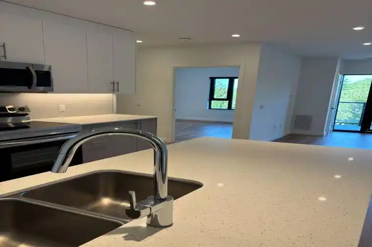 Welcome to The Flats at Rainbow Lake a modern condo community nestled in the serene and family friendly Doon South neighbourhood of Kitchener. This spacious 2-bedroom, 2-bathroom suite offers over 1,065 sq ft of well-designed living space, plus a private balcony with tranquil treetop views. Enjoy the comfort of modern living with in-suite laundry, an oversized in-unit storage room, generous closet space, and large windows that bring in natural light and leafy views. EV parking is available in the lot, adding convenience for eco-conscious residents. The building is rich with hotel-inspired amenities: entertain in the stylish party room, unwind in the sauna or yoga studio, work from the bright co-working spaces, or relax on the patio with BBQs and lounge seating. Theres even a fitness room, library, and an outdoor playground all designed with quality, comfort and functionality in mind. Located steps from the scenic Rainbow Lake, residents can enjoy peaceful walks and nature just outside the door. With quick access to Hwy 401, Conestoga College, and local schools, this home is ideal for a small family, professional couple, or mature students seeking quiet, upscale living in a calm setting