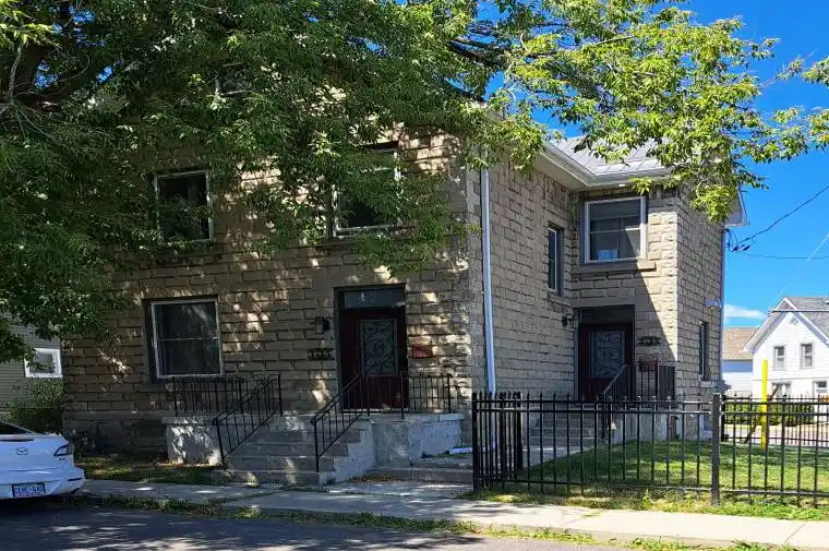 Exceptional investment opportunity in the heart of downtown Kingston. 45 Chestnut Street is a completely rebuilt, fully licensed two-unit property currently operating as two successful Airbnb suites. Ideal for hands-off investors, urban landlords, or owner-occupants seeking supplemental income. Stripped to the studs and professionally renovated between 2022 and 2023, this rusticated stone home was rebuilt with long-term performance and compliance in mind. Both units feature independent HVAC controls, in-suite laundry facilities, programmable Wi-Fi thermostats, and individual shut-off valves. All major systems have been updated, including electrical, plumbing, ductwork, windows, insulation(spray foam from the basement to the attic), and fire separation, to meet or exceed Ontario Building Code requirements. The cellar is fireproofed with mono-coat treatment. Modern touches include luxury vinyl flooring, quartz/granite counters, custom kitchen cabinetry, ceramic and marble tile work, LED soffit lighting, a security camera system, and an EV charger. Exterior upgrades include a metal roof, new eavestroughs, metal fencing, parking improvements, and fresh sod. The upper 2-bedroom unit features a finished garret loft and a private deck with views overlooking the Fruit Belt. The lower 1-bedroom unit offers an executive-style layout perfect for professionals or extended stays. Both are fully furnished and outfitted with linens, utensils, décor, and kitchenware included, making this a seamless short-term rental handoff. Whether you’re looking to maintain the Airbnb income stream, convert to long-term rentals, or occupy one unit while renting the other, this property is 100%turnkey and ready to perform.