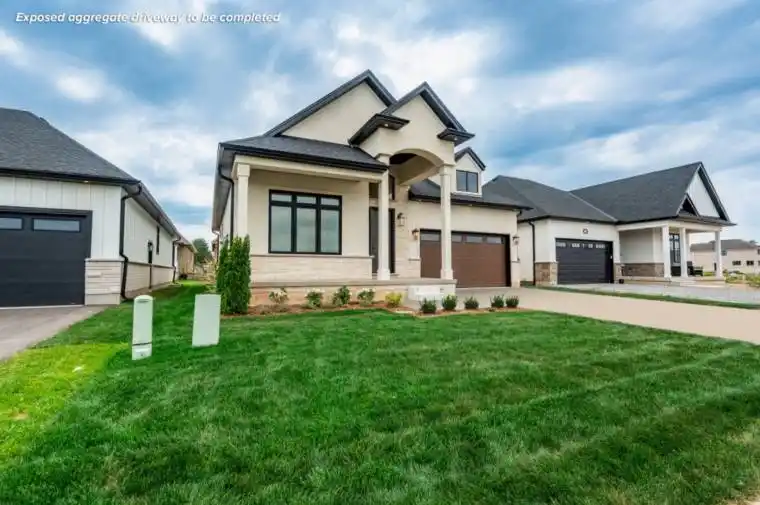 Welcome to the heart of Wine Country, where elegance meets craftsmanship. This brand-new designer bungalow by award-winning Parkside Custom Homes is a refined retreat tailored to suit families of all sizes, blending upscale comfort with timeless design. Step inside to an expansive open-concept layout featuring soaring 10-ft ceilings, 14ft foyer, 8-ft doors, and a stunning cathedral ceiling in the great room. The gourmet kitchen boasts sleek modern cabinetry, pantry with coffee bar making both daily living and entertaining a breeze. Indulge in the spa-like primary ensuite complete with a luxurious walk-in glass and tiled shower and stand alone tub. Engineered hardwood floors run throughout, complemented by thoughtfully curated finishes including 7″ baseboards, enlarged window and door casings, and oak stairs leading to a beautifully finished lower level. Downstairs, you’ll find a spacious rec room, an additional bedroom, a 4-piece bath, and dedicated zones for a family room and games or fitness area – perfect for multigenerational living or weekend entertaining. Outside, the home is wrapped in a rich blend of stone, stucco & brick, exuding sophisticated curb appeal. A covered front porch welcomes you in, while the rear covered deck offers a peaceful outdoor sanctuary. The fully sodded yard and paved driveway complete this turnkey package. With a deeper double-car garage, and only one final lot remaining in this exclusive enclave, this is an exceptional opportunity to experience refined living just minutes from Gretzky Estates, world-class wineries, acclaimed restaurants, and major commuter routes.