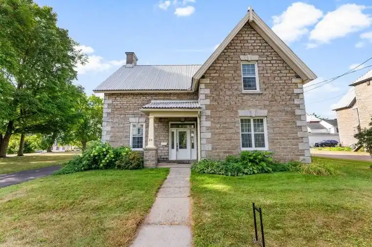 Charming Historic Residence in the Heart of Arnprior! Step back in time to this remarkable circa 1864 Scottish stone heritage home…known as “The Manse”. A signature grand staircase invites you into this timeless center hall entrance with ceramic tile. This rare gem is nestled in the heart of Arnprior, just steps from downtown. Within walking distance of schools, churches, shopping, restaurants, movie theatre, library, marina, Robert Simpson Park, The Ottawa River and The Arnprior & District Memorial Hospital – recognized with exemplary status by the Province of Ontario. This character filled residence offers original hardwood floors throughout and beautiful newer windows designed to maintain the character of the home.Sunfilled formal living room boasts high ceilings and a “to look at only” heritage marble fireplace. Lot’s of room to entertain in the large formal dining room. Another large room on the main floor can be a family room or in-home office and boasts a vintage marble fireplace (could be ugraded with a natural gas f/p insert). A generous sized kitchen is great for family gatherings or entertaining. Convenient powder room on the main floor. A bright sunroom off the kitchen is the perfect nook to while away the afternoon. Upstairs you will find 5 large bedrooms with closets! Heritage stone masons did a wonderful job of creating this stone home including a solid stone foundation. This home is truly a blank canvas….ready for your personal touch. An opportunity to blend modern comfort with timeless heritage & charm. Scheel windows & front door with side lights (15 yrs), Furnace (22 yrs), Metal Roof (30 yrs), 100 amp electrical panel with breakers + updated wiring. Interior perimeter of stone foundation has been spray foam insulated with fire retardant (15 yrs). Don’t miss out on this opportunity to own a bit of Arnprior’s history….just 30 minutes to Kanata.