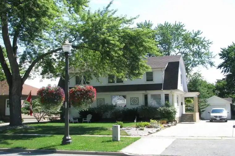 Beautiful home in highly sought after area of Amherstburg. Walking distance to everything – downtown, restaurants, groceries, pharmacies, parks, Fort Malden. Main Floor boasts hardwood floors throughout Library & Living Room (with radiant heat gas fireplace), good size Kitchen with eat-in nook, separate Dining Room, back door entrance includes Laundry area and 2 closets. Front foyer of the home with large closet and the 2 piece bathroom on the main floor. Professional high quality finished 3 Season Sunroom and composite deck completed in Summer 2014. Second floor of home hosts the 3 bedrooms with hardwood floors throughout, 4 piece bath with large soaker tub and glass surround shower. Hot water heating system, hot water tank, blown-in insulation, gas fireplace, exterior doors and some thermopane windows replaced in 2012. Central Air system replaced in July 2025. Detached garage was resided in 2023, also installed a new person door with keypad lock. Automatic garage door opener with 2 remotes. Appliances included. Immediate Possession.