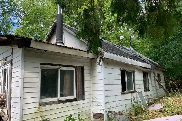 This approximately 800 sq. ft. bungalow sits nestled amongst mature maple and oak trees that provide privacy and tranquility that your family will appreciate with this property. This bungalow, which sits approximately 120 ft. from the roadside, offers lots of privacy again, with an abundance of mature trees at the front of the house House has an older brick fireplace in the living room as well as a small wood stove in the front entrance room/dining room, and older gas furnace that hasn’t been used in a few years. With approximately 55 of space that includes limestone rock coverage as seen in photos, there is potential to add on to the existing house in the backyard. The house needs extensive repair to bring it up to a livable state. The house needs a new Hydro One connection and a new exterior Hydro One meter, but it does have 120-amp wiring currently in the house. This house is walking distance to Lake Couchiching, Longford Mills Post Office, and bike trails from Washago to Orillia. Private boats can be launched on Lake Couchiching at Graham Side Road, which is a 10-minute walk from the house. If the buyer is interested in increasing the value of the current property, there is the potential, according to Ramara Township to build a semi-detached house or duplex with an approved new septic and well for each unit. ALL GUESTS ON PROPERTY MUST SIGN AN ACCIDENT WAIVER PRIOR TO VIEWING PROPERTY.