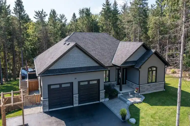 Impressive custom home in Hornings Mills on a 1 acre lot. Great curb appeal from the paved driveway, sweeping lawn, and grand entrance. The back yard is fenced for carefree enjoyment of the trails through the pristine bush. The spacious front foyer leads to the open living spaces including the living room with natural gas fireplace, dining area and kitchen. Situated to take in the sunrise, the kitchen features quartz countertops, countertop dining, a walkout to the deck with great views. Interior access from the double garage into a mudroom with convenient access to the kitchen. Main bedroom is spacious with a walk-in closet, 5 piece ensuite with soaker tub and shower. Two additional bedrooms on the main floor, a 4 piece bathroom and dedicated laundry room with lots of storage. Beautiful finishes throughout. The lower level features oversized windows with open space that provides many options. There is a rough-in for a bathroom, natural gas furnace, natural gas hot water heater and generlink. Built in 2021 with Tarion Warranty. Storage shed and wood storage. Ideal location in a great community just north of Shelburne where recreational activities are endless: Bruce Trail, Kilgorie Pine River Loop with access off the winding and picturesque River Road. Love where you live, year round.