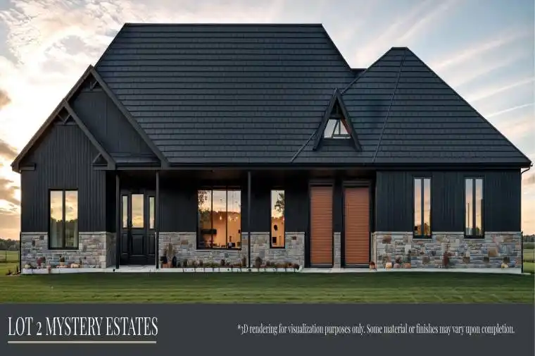 Welcome to this beautifully set 2,039 sf, 3 bedroom, 2 bathroom slab on grade with attached double car garage by Degagne Carpentry situated on a large 2.1 acre lot in sought after East Ferris. Located in one of the area’s most desirable locations. Close proximity to Trout Lake boat access and only 10 min to North Bay. Enter into the open concept living area with custom kitchen, living room with cathedral ceiling and propane fireplace overlooking the backyard. Spacious primary suite with 4pc ensuite complete with soaker tub and tiled walk-in shower as well as a large walk-in closet. 2 further large bedrooms and 4pc bath. Mudroom with laundry area and direct access to the double garage. Radiant in-floor heat along with forced air and a/c throughout the home. Full Tarion warranty and ability to select ones finishes. Possession 6-7 months from commencement of construction. *3D rendering for visualization purposes only. Some material or finishes may vary upon completion.
