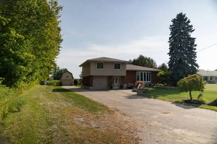Immaculate move-in-ready side split, in the countryside just west of the village of Scotland with no neighbours on three sides. Enjoy stress free living in this 3+1 bedroom, 2 full bath home with 2,429 sf of finished living space that is sure to impress. Boasting a spacious and inviting eat-in kitchen, a formal dining room, bright and airy living room with cathedral ceiling, sprawling family room, three good sized main level bedrooms, and two four-piece bathrooms. The basement is fully finished with a nice rec room with gas fireplace, another spacious bedroom and a utility/storage room. All major appliances included. The double wide paved private driveway can accommodate numerous vehicles, a tractor trailer etc., and the detached garage is the perfect spot for your toys or a man cave. The private backyard offers a lovely back gazebo, stunning hardscaping and landscaping, firepit, and paver stone walkways all around. Never be without hydro again with the standby generator that powers the entire property. Located on a quiet, paved road just mins from town. No disappointments here. Book your private viewing today.
