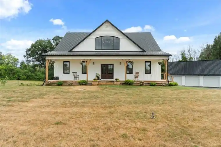 This custom-built 2019 home blends modern functionality with timeless farmhouse charm. Designed for multi-generational living, entertaining, and family life, it offers 3 fully finished levels, soaring ceilings, and bright open-concept spaces throughout. Enter under the covered porch, the main-floor primary suite is a luxurious retreat with a clawfoot tub, glass and tile walk-in shower, double vanities, and a walk-in closet. Upstairs, two generously sized bedrooms are connected to whimsical secret hideaways and each enjoys access to its own bathroom one with a private ensuite and the other with a semi-ensuite that also serves the loft/music space and games room. At the heart of the home is a stunning chef-inspired kitchen featuring floor-to-ceiling cabinetry, quartz countertops, a gas range, double wall ovens, an island with four stools, and a walkout covered balcony perfect for morning coffee barbeques, or evening relaxation. The adjacent great room is anchored by a gas fireplace flanked by bookshelves and filled with natural light from oversized windows. The fully finished walk-out basement includes a beautifully appointed in-law suite with three bedrooms, a full kitchen with island hello baking space! ,An open dining area, two electric fireplaces, in-floor radiant heating, private laundry, and two full bathrooms including a private ensuite with double sinks in the lower-level primary bedroom with walk in closet. Additional features include the 3 fireplaces (one gas and two electric), 6 bedrooms plus multiple bonus spaces, six bathrooms, two laundry spaces, mudroom with storage, lower level with in-floor heating. The detached three-car garage 30×40 foot garage with a 14x26ft loft, and 13x40ft of space with high ceiling (perfect for a car lift).. A spacious backyard completes the picture. Ideally located just minutes from town, this peaceful property offers flexibility and comfort for blended families, long-term guests, or anyone seeking space and style.
