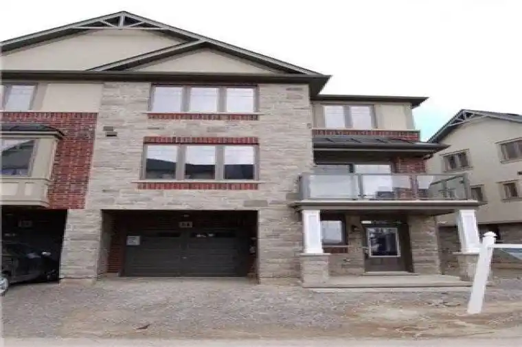 Welcome to this beautiful 3-bedroom, 2-bath end-unit townhouse in a prime Ancaster location! Enjoy easy access to the highway while living in a quiet, family-friendly neighbourhood. The home features 9-foot ceilings and a versatile main floor space that can be used as a home office, playroom, or even a convenient home gym. The kitchen is bright and modern, with quartz countertops, stainless steel appliances, a breakfast bar, and a dining area that opens to a cozy balcony, perfect for morning coffee or evening relaxation. Hardwood floors run through the main and second levels, while the carpeted third floor adds comfort and warmth to the bedrooms. *****Photos are from when the home was newly built. The property is currently equipped with all appliances. As the home is tenant-occupied, updated photos are not available at this time.