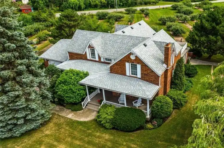 Desirable 9.14 acre multi-purpose rural property located on the eastern outskirts of Beamsville in the heart of Niagara renowned & world famous wine region – offering close proximity to Grimsby, Jordon, St. Catharines, Niagara Falls & QEW w/several award winning Wineries literally down the road. Positioned proudly on this large parcel is 1890 built century home, totally gutted to studs & re-built in 1990 + 1949 built 1440sf versatile barn/shop reflecting pride of lengthy ownership enjoying 2 road frontages -surrounded w/8 acres of tender fruit orchards & fertile vegetable soil. Follow King St E & take round-about into triple car concrete driveway – leads to quaint covered porch providing stately access to this lovingly cared for home introducing 2774sf of timeless décor highlighted w/ornate mouldings & original wood work. Ftrs grand front foyer entering central vestibule incs multiple French doors accessing formal dining room, living room enhanced w/picture window & n/g fireplace, sunken family room incs patio door WO & 2pc bath – continues to country sized kitchen incs roomy dinette – completed w/convenient MF laundry room, 4pc bath & direct entry to attached 1.5 car garage incs staircase to 1188sf unfinished basement. Classic period wood staircase ascends to spacious upper level opulent hallway offering entry to elegant primary bedroom w/private 14×14 balcony walk-out, 2 additional bedrooms & lavish 4pc bath. Gleaming hardwood flooring, coved ceiling & multiple walk-outs to impressive paver stone pavilion entertainment court yard compliment the home w/distinguished flair. Separate driveway leads to solid post & beam built barn boasting 3 roll-up doors, concrete flooring, hydro, produce cooler (not operational), 2nd bay & full functional loft. Extras – roof-2025, furnace-2015, AC-2019, 200 amp hydro, quality windows. Spectacular, diverse property appeals to Investors, Expanding Tender Fruit Farmers, Winery Entrepreneurs or Perfect Place to Live & Raise a Family.