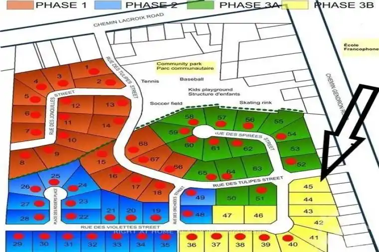 Build your dream home!! Almost 30,000 sq. ft. green corner lot 180.41 ft x 50.94 ft x 75.28 ft x 243.53 ft x 155.97 ft )in a fantastic JML subdivision in picturesque Hammond, completely sold out, with paved streets, municipal water, natural gas, tennis courts, high speed internet, lovely mature trees and greenspace. Build your dream home and enjoy nearby Prescott Russell Trail, bike paths and Larose Forest. snowmobiles, ATV, mountain Bike, Equestrian clubs . 22 min from everything you could ask for in Orleans, 15 min to Rockland and 30 min from our nations capital city. Hammond Golf and Country Club with a delicious restaurant attached is just 5 minutes away. Calypso waterpark just 22 minutes away too. Sellers got building site plans he will include as well. NO HST HERE!!!