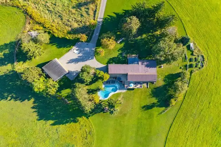 A truly exceptional luxury estate set on 50 acres of rolling hills, serene fields, and breathtaking landscapes. Nestled at the borders of Stouffville, Uxbridge, and Pickering, this property offers a rare combination of tranquility and privacy while remaining close to local amenities. A long winding driveway provides a sense of seclusion while guiding you through picturesque views to the home. The light filled open living area boasts 12 foot ceilings, exposed beams, and an antique style brick fireplace. Wall to wall windows frame panoramic west facing views of the countryside. The chef inspired kitchen combines high end appliances with European style touches and a generous island, perfect for casual dining or entertaining. An expansive deck with glass railings extends the living space outdoors, offering sweeping views of the rolling hills and, in the distance, the Toronto skyline. The luxurious primary suite features a walk in closet, built in wardrobe, and a five piece ensuite. Large windows and a walk out to the east lawn bring in the morning sun, creating a serene retreat. Three additional bedrooms and a contemporary five piece ensuite provide comfort for family and guests. The walk out basement includes a recreation area, two offices, a full bath, and a large bedroom currently used as a sewing room, all with stunning west facing vistas. Outdoors, six acres of maple bush, a seasonal pond, and a charming barn with original paddocks and vintage nameplates add character and potential. An oversized garage accommodates three large trucks and includes hydro and roughed in heated floors. Additional amenities include an inground pool, hot tub, and beautifully landscaped gardens. The home has received extensive updates, including plumbing, electrical systems, HVAC, roof, and spray foam insulation, along with energy efficient geothermal heating and in floor heating for comfort and low operating costs. To truly appreciate its beauty, you must come see it!