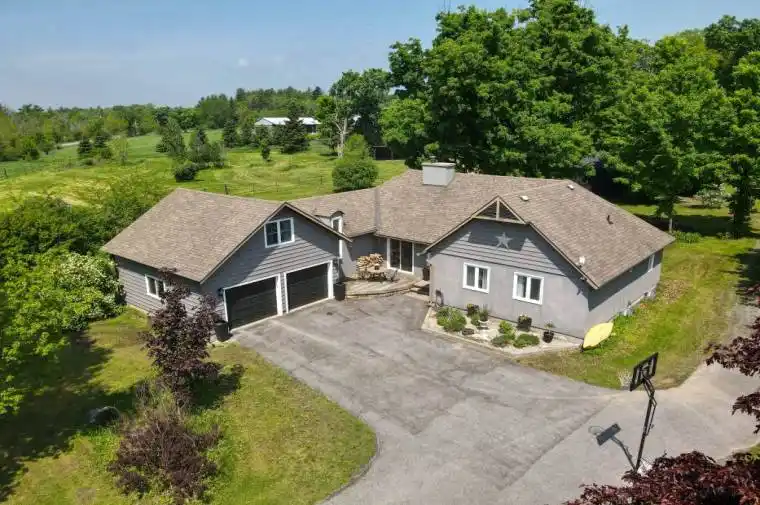 Welcome to this stunning 12.35 acre country estate, located within the city limits and only 10 minutes from Kanata’s vibrant hi-tech hub. A pair of stately stone gate posts mark the entrance to the property and its charming 3+1 bedroom, 3 bath bungalow. Designed with both comfort and entertaining in mind, the home features a sun-filled south-facing eat-in kitchen with access to the deck and a warm, inviting living/dining area centered around a wood-burning fireplace. The spacious primary suite includes an ensuite, while two additional bedrooms, two bathrooms, a mudroom and laundry area complete the main floor. A separate entrance leads to the loft, offering a versatile retreat perfect for a home office, studio or creative getaway. The lower level provides exceptional space, including a fourth bedroom, wall to wall storage closets and a sprawling family room with enough room for a games area, workout space and movie nights! Equestrian enthusiasts will be delighted by the property’s facilities: three fenced paddocks, a sand ring and a two-stall barn with tack room. Whether you are seeking a serene country lifestyle or horse lover’s dream property, this estate truly has it all.