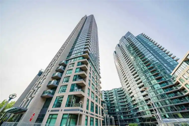 Apartment For Lease in Water Park City Condos, where urban luxury meets lakeside living in this bright and spacious 2-bedroom, 2-bathroom Corner unit with approximately 825 sf of refined living space Plus Balcony. For Extra Storage this unit includes a Locker and one parking spot. This condo features an open layout flooded with natural light, soaring 9-foot ceilings, sleek hardwood floors throughout, granite countertops . The Primary Bedroom suite is a sanctuary unto itself, complete with his & hers closets and a 4 pc-ensuite for seamless convenience. Open Concept living with walk out to private balcony. This Well Managed building offers a wealth of amenities to enrich your lifestyle: rooftop garden with BBQs, indoor Swimming pool and hot tub, sauna, fully equipped modern gym, and 24-hour concierge for peace of mind. Located just steps from TTC, Harbor front, Exhibition Place, CNE, Rogers Centre, King West and the Financial District, with quick access to Lake Shore Boulevard and the Gardiner Expressway, everything you need is within reach. utilities are included in the Rent Except Hydro and internet. and the unit comes fully outfitted with fridge, stove, dishwasher, microwave, washer, dryer, light fixtures, and quality window coverings. Beautiful Living by the lake with downtown Toronto at your doorstep.