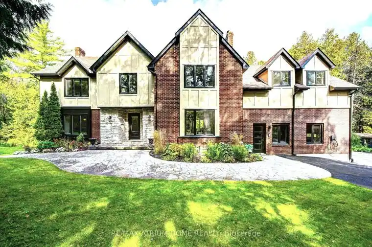 Priced to Sell — Stunning 1.47-acre private estate nestled on a quiet cul-de-sac in Stouffville, surrounded by mature trees. Offering over 5,000 sq.ft. of meticulously finished living space, seamlessly blends sleek contemporary design with comfort and functionality. The heart of the home is a chefs dream kitchen featuring double islands, top-of-the-line appliances, and potential space for a second cooktop or BBQ — perfect for entertaining family and friends. The bright, open-concept layout connects the kitchen, living, and family areas, with custom built-ins and an artistic feature wall adding style. From the living room, step out to a roof-covered deck overlooking a beautifully treed backyard and in-ground pool, creating a private oasis for peace and relaxation. The second floor features five generously sized bedrooms, highlighted by a luxurious primary suite with a 6-piece spa-like bathroom, frameless glass shower, and an oversized skylight. Plus a spacious Great Room with a fireplace offers versatile space for a family lounge, hobby studio, or potential 6th bedroom. The fully finished walk-out basement offers flexible space for recreation, fitness, or media. Cozy electric fireplaces and pot lights on both levels enhance the home with warmth and style. Additional features include a recently renovated 2.5-car garage with wall-mounted EV charger, driveway parking for 7+ vehicles, and a laundry room with direct access to both the garage and backyard. Prime and convenient location, just under 10 minutes to Highway 404 –This estate perfectly combines modern elegance, practical living, and lifestyle comforts, offering a rare opportunity to own a truly exceptional home in a prestigious neighborhood.