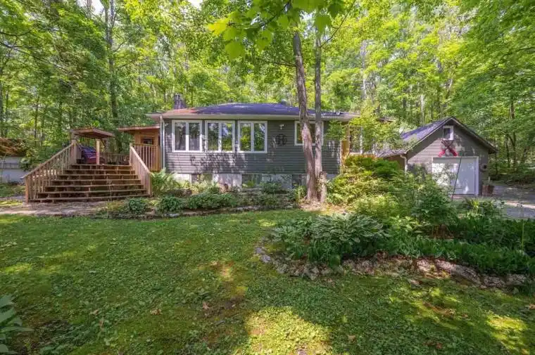 Deeded access to Buckhorn Lake. Renovated from top to bottom, this lovely home is located just 5 minutes from the town of Buckhorn. This little gem is located in a waterfront community and sits on a picturesque treed lot with obstructive lake views and sunrises. Featuring 3+1 bedrooms, 1.5 baths and a stunning functional kitchen with quartz counters, stainless appliances, and a large built in quartz table with storage beneath. Enjoy the spacious living area with an abundance of windows, hardwood floors, and a stone fireplace with propane insert. The lower level includes the 4th bedroom, rec room, and a large work area. An amazing screened in porch is perfect for large gatherings and a cozy sunroom is right off the kitchen for easy enjoyment. There is lots of decking, a hardwired generator, and a single car garage steps from the house. Located on a well-maintained year-round road just seconds to the Township road and school bus route.