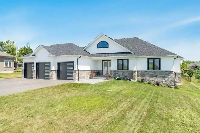 Top 5 Reasons You Will Love This Home: 1) This striking ranch-style bungalow makes a bold first impression with its crisp white exterior contrasted by sleek black accents, a sophisticated stone skirt wrapping the base, a freshly paved driveway offering generous space for RVs, boats, or multiple vehicles, an eye-catching Jewel Stone interlock path guiding you to an elegant front entrance, and tucked beside is a spacious three-car garage ready to house your tools, toys, and even your dream workshop 2) Perched atop a scenic hill in a newer subdivision framing breathtaking panoramic countryside views while being situated on a quiet dead-end street 3) Step inside and feel like your’e walking into a dream, with a grand, light-filled entryway featuring soft grey and white porcelain tiles leading to a stunning wall of windows and doors overlooking the backyard; the heart of the home boasts vaulted ceilings, a striking gas fireplace with white trim, and an oversized 4’x8′ kitchen island 4) Designed with modern comfort in mind, the home features stainless-steel appliances, an owned humidifier, a water softener, a complete water filtration system, and upgraded wood flooring, while outside, you’re greeted with an outdoor barbeque hookup along with a basement prepped and ready for customization, complete with a subfloor for two bedrooms and a bathroom, along with insulated outer walls 5) Enjoy being placed between Orillia, just six minutes away from essential amenities, including a gas station and local shops, just around the corner. 1,929 above grade sq.ft. plus an unfinished basement.