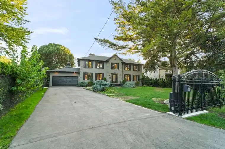 Rare offering of a home to lease with an electronic gate providing enhanced privacy and security! This completely redesigned family home in desirable Rattray Marsh neighbourhood known for its iconic scenery, well established streets and access to Lake Ontario! Inside you’ll find beautiful designer finishes with prodigious principal rooms offering new wide plank hardwood floors, expansive windows and exceptional millwork throughout. The white bespoke kitchen with breakfast area offers ample storage space and features quartz countertops, large peninsula island, stainless steel appliances and provides direct access to the spacious dining room! Accompanying this level is the elegant living room with quartz fireplace, the office featuring built-in cabinetry and the sunken family room elevated by its dark and dramatic exposed ceiling beams, eye-catching chandelier, floor-to-ceiling stone fireplace and exceptional decorative wood paneling as well as a walk-out to the landscaped backyard. The second level hosts the romantic primary with built-in cabinetry, large walk-in closet and stunning 5-piece ensuite. Down the hall are 3 more bedrooms with their own captivating design details and a shared 5-piece bath. The finished basement features a large rec area with luxury vinyl floors, a 3-piece bath, a laundry room with ample counter and storage space, a 5th bedroom and an infrared sauna for the ultimate at-home spa experience. The stunning backyard completes this home with an inground pool, stone patio and green space!