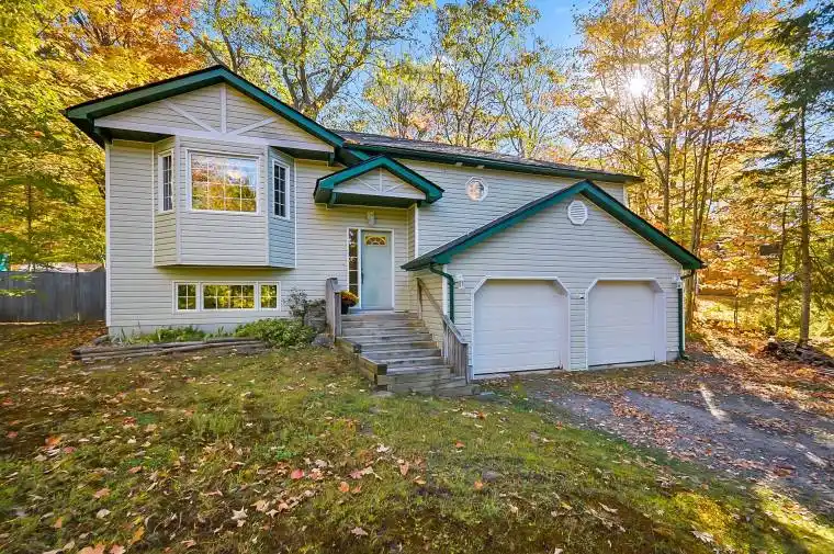 Welcome to this charming 3-bedroom raised bungalow with private backyard and finished basement. This beautifully maintained 3 bedroom, 2.5 bathroom home on an oversized lot with municipal services, just minutes from beaches, parks, schools, and all town amenities. The main floor offers an inviting open-concept layout with a bright living room, spacious dining area, and a kitchen featuring plenty of cabinets and counter space. Large windows fill the space with natural light, and patio doors lead to a deck overlooking a private backyard surrounded by mature trees perfect for entertaining or relaxing. The primary suite boasts a large closet and a private 3-piece ensuite, while hardwood floors throughout the main level add warmth and character. The fully finished basement provides even more living space, complete with a recreation room, cozy wood stove, den with a 2-piece powder room (easily converted into a 4th bedroom with the addition of a door), large storage area, laundry/utility room, and convenient garage access. This property had a new roof completed in 2023. New furnace and A/C (2025) lease in place with Reliance and Hot Water tank rental. Additional highlights include a double attached garage, central vac system and an oversized lot with mature trees. This home combines comfort, functionality, and a fantastic location ready to be enjoyed!
