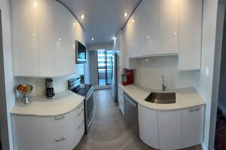 Top Floor corner unit 3 bedroom , 2 full bathrooms, bright fully renovated unit in Prestigious High Park Community . white kitchen with stainless steel appliances Spacious with 3 walk outs to open balconies