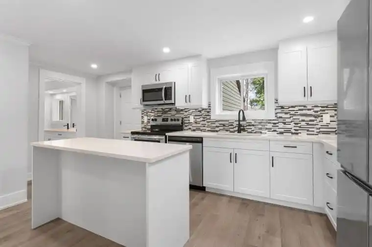 Incredible location, walking distance to downtown, shops, waterfront and trails. Freshly renovated, 3 bedroom, fully detached century home with premium finishes and detail. Custom kitchen with stainless steel appliances, quartz counters and functional island opens to the dining room. Cozy main floor family room with accent walls, LED lighting, crown mold and California shutters throughout. Main floor laundry/mudroom is great for sporting goods, and the 4 piece bathroom doubles as a powder room when entertaining guests. 3 bedrooms upstairs with water view from the primary, second luxury 4 piece bath with custom shower and soaker tub. Freshly painted, carpet free, ductless air conditioning for the summer and cozy gas radiant heat for the winter. Fully fenced, with private parking and yard space to enjoy. Snow removal included until Spring 2026! A truly unique property to call home, a definite must see!