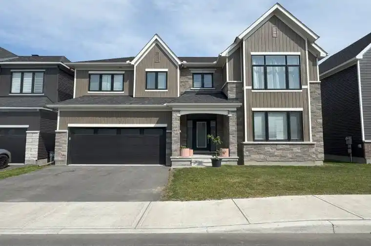 Welcome to 757 Eminence St. in Barrhaven’s sought-after Half Moon Bay! This spacious and beautifully upgraded home offers over 3,300 sq ft of living space, including a finished walk-out basement with a full bath. Featuring 4 bedrooms, 5 bathrooms, and a main-floor office, it’s perfect for families or anyone needing extra space. Highlights include 9′ smooth ceilings, hardwood floors, a modern kitchen with quartz countertops on the main level, second-floor laundry, and a luxurious primary suite with walk-in closet and 5-piece ensuite. Located on a quiet street close to parks, schools, shopping, and transit – this home truly has it all!
