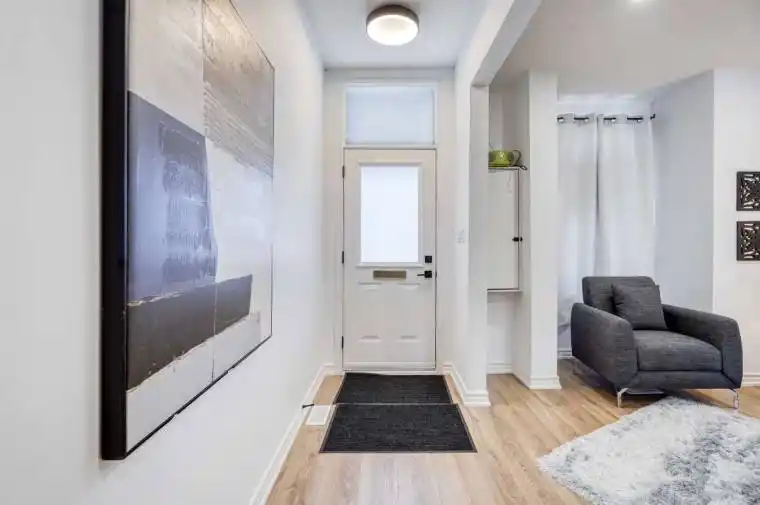 Unbeatable Location & Life styles: Discover the heart of the city! This home is an End Unit Freehold Townhome situated in Primo Little Portugal, offering the space and feel of a semi-detached property in a highly sought-after, trendy neighborhood. Luxury Living: Entertainment effortlessly in the bright open-and spacious open-conception living and dining area, featuring soaring 9 ft ceilings on the main level. Gourmet Kitchen: The brand new kitchen is a chef’s delight, boasting elegant granite countertops and sleek, modern finishes. Master Retreat: Escape to your private sanctuary! The master suite features an incredible 10 ft ceiling, creating an airy and luxurious feel. Premium Income Potential: Maximize your investment with a fully separate bachelor basement suite |(with 8 ft ceilings and a private walkout entrance) , perfect for rental income or in-law suite. Ultimate convenience: Enjoy the rare luxury of a gated parking pad for two cars wit direct backyard access, a convenient laundries for hassle-free living. Peace of Mind Updates: This home is completely undated top to bottom with – New HAC & owned & owned tankless water heater. – New Low E windows & exterior siding/stucco – Modern accents including new pot lights, oak stairs, glass railing, & new baths. Perfectly Connected: Everything you need is steps away – the TTC, Top schools and a vibrant strip of trendy restaurants and shops. Custom made closets have been added by seller recently.