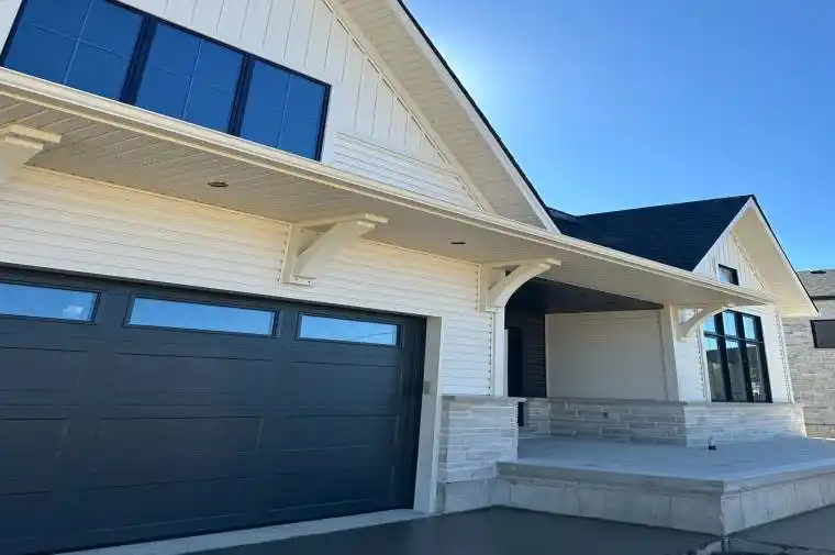 This custom designed estate home is tucked away on a quiet dead-end street in one of Listowel’s most coveted neighbourhoods, where privacy, prestige, and modern elegance meet. Step into a grand front foyer with soaring 16′ ceilings, setting an opulent tone from the moment you enter. The open-concept main level is finished with rich hardwood flooring throughout, blending warmth and refinement. At the front of the home, two spacious bedrooms share a beautifully appointed 4-piece bathroom, ideal for guests or family. The heart of the home reveals a designer kitchen featuring a walk-in pantry, quartz countertops, and a large island perfect for entertaining or casual gatherings. The adjoining dining area flows effortlessly to an expansive covered outdoor living space complete with a gas fireplace, offering a serene setting for alfresco dining or quiet evenings by the fire. Anchored by a striking stone fireplace, the great room exudes comfort and grandeur with large windows that bathe the space in natural light. Retreat to the primary suite, a luxurious haven with a spacious bedroom, elegant 5-piece spa ensuite featuring a deep soaker tub, double vanity, glass shower, and a large walk-in closet designed for functionality and style. Additional main floor highlights include a laundry room, mudroom with direct access to the oversized double car garage, which offers the unique convenience of a walk-down to the fully finished lower level. Downstairs, discover an expansive space ideal for multi-generational living or hosting, complete with two additional bedrooms, a full 4-piece bathroom, providing incredible flexibility for guests, office space, or recreation. A truly exceptional home offering a rare blend of luxury, space, and tranquility this is estate living at its finest in the heart of Listowel!