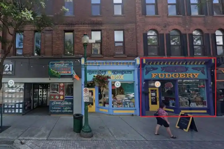 Excellent bright and spacious retail space (is currently set up as a Fudgery store). One of the Best locations in the vibrant Downtown. Mechanicals upgraded in 2025 an Additional European A/C system for double the cooling. Two Washrooms on Main floor and and a kitchenette. Full height storage basement of around 1700 square feet is included (not added to square footage in listing) for a total of up to 3400 square feet main and below levels. Great mix with lots of great tenants. Very responsible Landlord and Management company. Next door unit (850 square feet) also for lease at same time and can be combined to create around 2550 square feet of retail space on street level and more than 2500 square feet on lower levels. Many permitted uses. A lot of Leasehold improvement will remain – list is available.