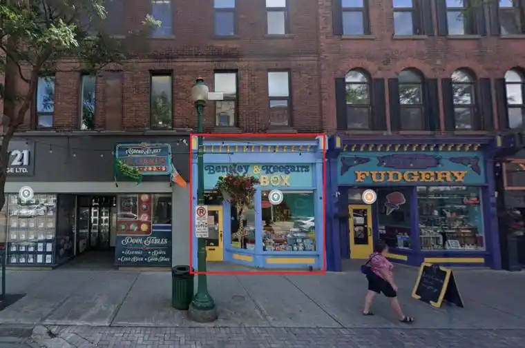 Excellent bright and spacious retail space (is currently set up as an Ice cream store). One of the Best locations in the vibrant Downtown. Mechanicals upgraded in 2025 with a new central A/C system and an Additional European A/C system for double the cooling. Two Washrooms (1 downstairs and 1 upstairs) and a separate office area at back. Full height storage basement of around 800 square feet is included (not added to square footage in listing) for a total of up to 1650 square feet main and bellow levels. Great mix with lots of great tenants. Very responsible Landlord and Management company. Next door unit (1700 square feet) also for lease at same time and can be combined to create around 2550 square feet of retail space on street level and more than 2500 square feet on lower levels. Many permitted uses. A lot of Leasehold improvement will remain – list is available.