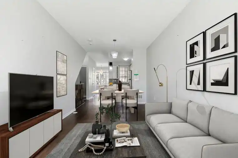 3 Bedroom, 3 bathroom unit in Natures Path! Bright, south facing unit in a family friendly community, filled with natural light and thoughtfully designed for modern living. The open concept main floor features high ceilings, a combined living and dining area, and a sleek kitchen with a large centre island and plenty of storage. An additional flex space off of the kitchen is perfect for a home office, additional bedroom, or a second dining/lounge area, with walkout access to a private patio equipped with a gas bbq hookup and direct access to the parking lot. Convenient 2 piece bathroom on the main level. Downstairs, the primary bedroom includes a private ensuite, plus two more bedrooms and a full 4 piece bath complete the lower level. Steps of TTC, major highways, parks, waterfront trails, and shopping. A solid choice for anyone looking for comfort, flexibility and a great location.