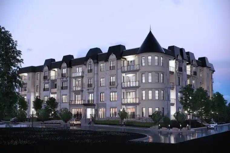 Welcome to Coveteur . A New Standard of Luxury Living.This exclusive 4-storey condominium offers 41 luxury suites, with occupancy expected in Fall 2026. Spacious open-concept layouts feature 10-foot ceilings, 8-foot doors, and an architecturally distinctive circular foyer design. Choose from four professionally curated décor themes Parisian, Scandinavian Chic, New York Loft, or European Traveller to personalize your suite with style and sophistication. Enjoy balcony or terrace access through elegant three-panel sliding doors. Each suite includes an Ecobee smart thermostat, individual high-efficiency MagicPak system, and fresh air ventilation for optimal comfort and indoor air quality.The designer kitchen offers custom cabinetry with crown moulding, quartz countertops, tile backsplash, and an eat-in island (as per plan). Building amenities include a landscaped ground-floor terrace with valley views, a stylish party room with kitchen and bath, a designer lounge with two-sided fireplace adjacent to the library, and a well-equipped fitness and yoga studio. Comes with 1 underground parking spot and locker. All parking spaces are roughed-in for a car lift and EV charger (available at an additional cost). Built strong with Insulated Concrete Forms (ICF) for superior durability and efficiency. Visit www.coveteur.ca for floorplans and full project details.