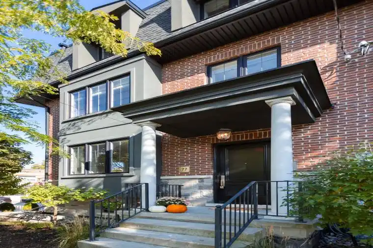 Elegant End-Unit Freehold Townhome in Prime Leaside. Perfectly positioned across from Trace Manes Park, the Leaside Library, and the Community Centre, this stunning end-unit freehold townhome offers over four levels of impeccably designed living in one of Toronto’s most coveted neighbourhoods. Steps to the boutiques, cafés, and restaurants of Bayview Avenue, this home combines timeless sophistication with the ease of modern, low-maintenance living-ideal for professionals or families seeking space, style, and convenience. The open-concept main floor is bright, elegant, and exceptionally functional. The chef’s kitchen features Thermador stainless steel appliances, a gas range, a massive granite centre island, a Parisian-style banquette for morning coffee or casual dining and French doors opening onto the deck. Thoughtfully designed custom built-ins throughout the kitchen, dining, and living areas offer abundant concealed storage while maintaining a clean, contemporary aesthetic. The marble gas fireplace anchors the main floor in warmth and charm. A chic powder room completes the main level. Upstairs, the second floor features three bright, spacious bedrooms, one with a modern 3-piece ensuite. The large family bath with double marble vanity, a full laundry room and two linen closets round out this level. The third floor is devoted to the luxurious primary suite, with two walk-in closets, a serene den or office, and a spa-inspired ensuite with two marble vanities, a glass shower and freestanding tub. Over 900sf of luxury all to yourself! The finished lower level includes a large recreation room, generous storage areas, and an immaculate 1.5-car garage equipped with a 240V EV charging outlet, built-in bicycle racks, and automatic door. No more maintenance, landscaping & snow-removal included in low monthly fee. Beautifully appointed, intelligently designed, and located in the heart of Leaside, this home truly offers it all!