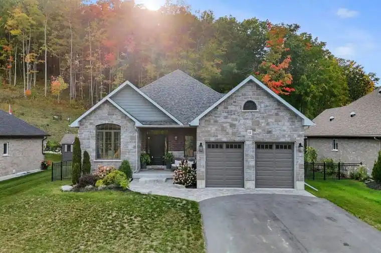 Welcome to Haven on the Trent where luxury living meets natural beauty. This stunning custom built brick-and-stone bungalow was thoughtfully designed with elegance and comfort in mind.The main floor boasts an open-concept layout with engineered hardwood throughout, soaring vaulted ceilings, and an abundance of natural light. A versatile formal dining room or office sits at the front of the home, complemented by a stylish powder room.The chef-inspired kitchen features a large centre island with breakfast bar, custom cabinetry, quartz countertops, and premium GE Cafe fridge and stove, seamlessly flowing into the eat-in dining area with a walkout to the deck and professionally landscaped backyard. The great room impresses with a dramatic gas fireplace and vaulted ceilings, perfect for both everyday living and entertaining.The main-floor primary suite overlooks the ravine lot and showcases tray ceilings, a walk-in closet and a 4pc ensuite with double sinks and tiled shower. A second bedroom on the main level also enjoys its own private 4pc ensuite. Convenient main-floor laundry/mudroom with garage access completes this level.The lower level is bright and inviting, with above-grade windows, a spacious rec room, a bar area with rough-in for sink, a full 3pc bathroom, and two additional bedrooms one with a soundproof walk-in closet ideal for musicians or gamers, and another featuring two oversized walk-in closets. Outdoors, enjoy a fenced backyard oasis with professional landscaping, this 250ft deep lot is perfect for relaxing or entertaining. Ideally located, this home offers the best of both worlds peaceful nature and everyday convenience. Just steps from the Trent River, scenic trails, and Sunny Life Recreation & Wellness Centre, and close to Seymour Conservation Area, Ferris Provincial Park, the suspension bridge, downtown Campbellford shops, bakeries, and the hospital.This is more than just a home its a lifestyle.