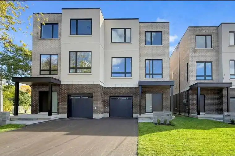 Welcome to Modern Luxury in the Heart of Mississauga! Experience refined living in this brand-new custom-built semi-detached residence showcasing 3,488 sq/ft of elegant, magazine-worthy interiors. Nestled in a vibrant community just steps from shops, parks, transit, Port Credit, and top amenities, this stunning home blends striking architectural design with exceptional craftsmanship and premium finishes throughout. Step inside to a bright, south-facing layout with soaring 9′ ceilings on all levels, sleek wide-plank engineered hardwood flooring, and a dramatic open-riser oak staircase with glass railings. A grand porcelain-tiled foyer with custom millwork closets sets the tone for the modern, airy design carried through every level. The chef-inspired kitchen is the heart of the home – beautifully appointed with integrated appliances, a 36″ induction cooktop, 42″ built-in fridge, quartz counters, a waterfall island with seating, LED-lit custom cabinetry, and a full servery with under-counter beverage fridge. The open living and dining areas feature a built-in electric fireplace and large picture windows, creating a sophisticated yet welcoming space for entertaining. Upstairs, the primary suite is a serene retreat with a spa-like ensuite showcasing a freestanding tub, frameless glass shower, double vanity, and matte black fixtures. All 4 bedrooms feature designer finishes with 2 private ensuites. The lower level offers a bright, spacious recreation/family room with its own 3 piece ensuite and walk-out to the fully fenced backyard, perfect for family gatherings or guest accommodations. Additional highlights include interlock patio, built-in garage plus extended 2-car driveway, upper and lower laundry rooms, 200 AMP electrical service, central air conditioning, and electric garage opener with keypad. This is a rare opportunity to own a statement home with ***7 Year Tarion warranty*** offering modern luxury, thoughtful design, and an unbeatable location.