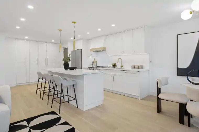 Welcome Home! Experience the epitome of modern comfort in this rarely available 3-bedroom showstopper – fully renovated from top to bottom with exceptional attention to detail. This spacious unit offers a bright, open-concept living area with a walk-out to a large balcony showcasing peaceful northwest views overlooking lush, private treetops. Gorgeous, high-end engineered hardwood floors flow seamlessly throughout. The state-of-the-art custom gourmet kitchen features opulent quartz countertops and backsplash, top-of-the-line stainless steel appliances, and a panel-ready dishwasher. Enjoy custom millwork and built-ins in every bedroom, along with a stunning in-suite laundry room featuring a sink and a large custom closet at the entrance for added convenience. The bedrooms are generously sized, including a primary suite with a walk-in closet, while the luxurious bathrooms feature custom vanities and quartz countertops. Every detail has been upgraded – from new doors and hardware to thoughtfully designed storage throughout. Includes parking, locker & more! The building’s common areas have been recently updated, with new elevators and lobby furniture coming soon. Truly a must-see – this rare 3-bedroom gem will not last!