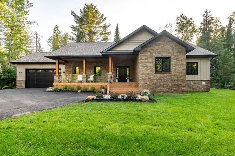 Welcome to this brand new executive bungalow by Matrix Construction, located in the desirable new Crimson Lane community in beautiful Port Sydney. Set on an acre, near the end of a quiet road, this home boasts exceptional curb appeal with neutral-toned stone and vertical vinyl siding, a large covered front porch, and a modern yet timeless aesthetic. Step inside to a spacious foyer that leads into the bright, open-concept living, dining, and kitchen area, ideal for daily living and entertaining. The living room features a natural gas fireplace with quartz accents, while the chef’s kitchen boasts a large island with breakfast bar seating and a walk-in butlers pantry offering additional storage. Off the kitchen, a walkout takes you to the screened-in Muskoka Room and deck with a natural gas BBQ hookup, perfect for summer evenings. The mudroom entry from the attached double car garage is both functional and stylish, with access to a 2-piece powder room and a beautifully appointed laundry room. The main floor offers three spacious bedrooms, including a serene primary suite with a walk-in closet and a 3-piece ensuite featuring heated floors and a tile and glass shower. Two additional bedrooms share a 4-piece bathroom. The lower level is fully finished, adding valuable living space with a large rec room, fourth bedroom, another 4-piece bathroom, a generous office or flex space, and a utility/storage room. This home combines the best of quality construction and thoughtful design, featuring a layout that suits both families and retirees. Enjoy the charm of Port Sydney, with nearby access to Mary Lake beach and boat launch, groceries, LCBO, gas station, elementary school, high speed internet, and more. With easy highway access and just a short drive to Huntsville or Bracebridge, you’ll love the balance of rural peace and modern convenience. A beautifully built home in a community you’ll be proud to be part of.