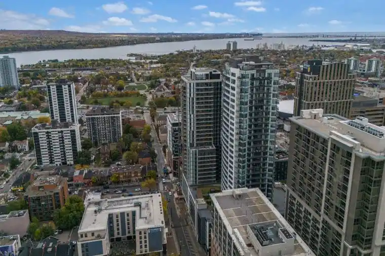 Experience upscale urban living in this beautifully designed, spacious, luxury apartment at20 George Street, one of Hamilton’s most desirable addresses. This contemporary high-rise offers a perfect blend of sophistication, convenience, and comfort – ideal for professionals seeking a stylish home base in the city’s vibrant core. Step inside this spacious 870 squarefoot, 2 bedroom, 2 bathroom open-concept suite featuring floor-to-ceiling windows that flood the space with natural light and showcase breathtaking city and escarpment views and lakeviews. The sleek modern kitchen is equipped with stainless steel appliances, quartz countertops, plenty of cupboard space and elegant finishes throughout. You’ll feel like a king looking out at the stunning southeast views over the city and beautiful escarpment from two spacious balconies. Ensuite bathroom features vanity with double sinks. Lots of storage space, in-suite laundry, and custom blinds. Unwind at the end of the day in the premium building amenities including a state-of-the-art fitness centre with yoga room, rooftop terrace with BBQs, party lounge with pool table, meeting room/boardroom, bike storage and more. Parking available for additional $150 per month or $200 per month plus hydro for EV.Live in the heart of it all! Steps to Hamilton’s vibrant restaurant and arts scene! You’re minutes to James St S. shops and restaurants, Go station, St Joseph’s Hospital, McMaster University Downtown Centre, Jackson Square, FirstOntario Centre, the Art Gallery of Hamilton,403/QEW highway access, and HSR Public transportation. Easy access to Bruce trail,Hamilton’s waterfalls and Harbourfront parks. Whether you’re a busy professional, medical resident, or executive seeking convenience and class, 20 George Street offers a truly elevated lifestyles in the Heart of Hamilton’s ambitious downtown core!
