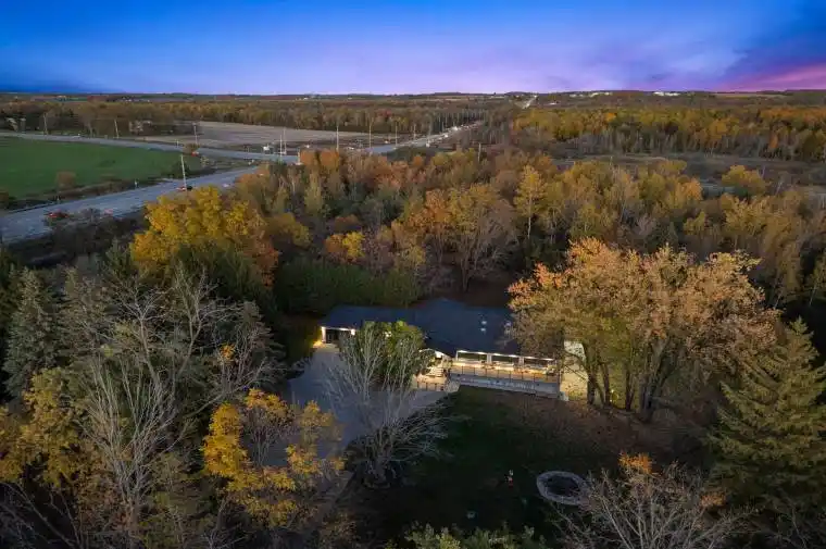 Welcome to 2993 Innisfil Beach Road, a private luxury estate nestled on 19.17 acres of Muskoka-like landscape in the heart of Innisfil. Designed for those seeking tranquility and sophistication, this newly built bungalow offers over 4,600 sqft. of refined living space combining modern design with natural beauty. A long private drive leads to an elegant residence surrounded by mature trees and manicured grounds. Inside, an open-concept main floor features Italian porcelain flooring and expansive windows framing breathtaking views. The chef-inspired kitchen boasts quartz countertops, an oversized island, LG stainless steel appliances, and custom soft-close cabinetry, flowing seamlessly into a spacious living room with a stone-surround electric fireplace. The primary suite is a serene retreat with multiple closets, including a walk-in with built-ins, and a luxurious five-piece ensuite featuring marble shower floors, a freestanding tub, and double vanity. A second bedroom and elegant 3-piece bath complete this level. The lower level is designed for entertaining, featuring a second kitchen and dining area with 17-ft ceilings, floor-to-ceiling windows, and a walkout to the backyard. A home theatre, two additional bedrooms, and a modern bath make this level perfect for guests or extended family. At the heart of the home is an extraordinary indoor saltwater pool and jacuzzi, complemented by skylights, a red cedar sauna with music and Wi-Fi, and smart controls for lighting and water features. Outdoors, enjoy private walking trails, a spring-fed creek, fire pit, and paved pathways throughout the property. Additional highlights include a 3-car garage, 800+ sqft. insulated barn, Russound built-in sound system, new roof, windows, furnace, and A/C, high-speed internet (1,000 GB), and city approval for three additional homes. 2993 Innisfil Beach Road is truly where modern luxury meets peaceful country living.