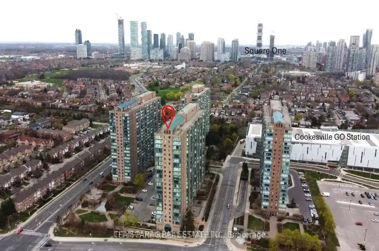 Location! Location! Bright & Spacious Corner Unit Featuring 2 Bedrooms, Large Living Room With Expansive Windows, Solarium & Separate Dining Area Perfect For Entertaining Or Relaxing. Modern Kitchen With Granite Counters, S/S Appliances, Ceramic Flooring & Plenty Of Natural Light. Primary Bedroom Offers A Walk-In Closet & 2-Pc Ensuite, While The Second Bedroom Features A Large Closet & Windows. Enjoy The Convenience Of Ensuite Laundry Plus A Versatile Solarium Ideal As A Home Office, Study, Or Guest Space. Well-Maintained Building With Party Room & 24Hr Concierge. Steps To Go Station & Minutes To Square One, City Hall, Library, Community Centre & More. Easy Access To QEW, 403 & 401. Urban Living At Its Finest! Property Being Sold As Is.