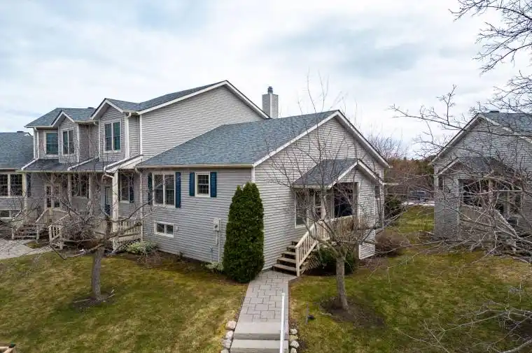 Main Floor Living in the Heart of Thornbury! Well-maintained 2-bedroom Applejack condo offering bright, functional living with a walk-out basement and private backyard. Freshly painted and filled with natural light, this home features an open-concept main floor with vaulted ceilings, a skylight, and a cozy gas fireplace. Walk out to a private deck overlooking mature trees and peaceful green space, ideal for morning coffee or evening relaxation. The main floor primary bedroom and full bath provide convenient, accessible living. The lower level offers a spacious family room with another gas fireplace, a guest bedroom, 3-pc bathroom and a walk-out to a private patio. A newer washer and dryer add everyday convenience. Enjoy Applejack’s fantastic amenities including two outdoor pools, tennis and pickleball courts, and beautifully landscaped grounds. Just a short walk to downtown Thornbury’s shops and restaurants and minutes to Georgian Bay, the Georgian Trail, golf, and area ski clubs including Blue Mountain and the private clubs along the escarpment. Perfect for full-time living or a weekend ski retreat in one of Thornbury’s most desirable communities.