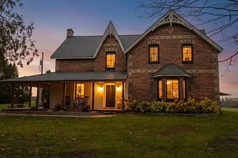 Projected to generate $70,000-$80,000 in solar income over the next five years, with future hydro savings thanks to the two solar panel systems on the property, this timeless all-brick Victorian farmhouse, set on over 3 acres of gently rolling countryside, perfectly blends 1800s character with modern sophistication. Fully renovated in 2023, it offers a seamless fusion of historic charm and contemporary comfort, featuring a chef-inspired kitchen with a hidden pantry, a wall of natural light, a formal dining room with a cozy wood-burning fireplace, and a spacious family room accented by a propane fireplace. The wrap-around front porch enhances the home’s curb appeal, while main-floor laundry with garage access adds everyday convenience. Step outside to enjoy 360-degree panoramic views stretching 15 miles, unwind by the fire pit patio, or explore multiple outbuildings ideal for storage or hobby farming. With solar panels, a durable metal roof, and an attached garage, this remarkable property offers sustainability, functionality, and elegance-all within minutes of major amenities yet surrounded by tranquil country beauty.