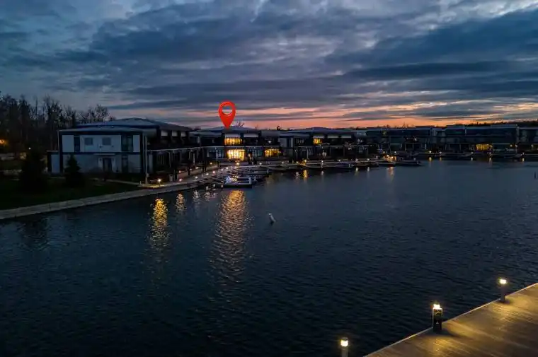 Marina Town With Premium Views! An exceptional opportunity to own in one of the most sought-after locations at Friday Harbour! This beautifully designed MT2 model townhome offers unobstructed views of the Beach Club, treed areas, and golf course, delivering the perfect blend of luxury and lifestyle. The interior is finished to an exceptional standard, featuring vintage solid sawn hardwood floors throughout, a sleek Paris kitchen with full-height upper cabinets, an extended centre island, flush-mounted fridge, upgraded exhaust fan, and elegant roller blinds throughout. Enjoy the custom designer fireplace, rough-in for CAT6 and ceiling speakers, and two outdoor spaces a main floor terrace and an upper balcony overlooking serene, open views. Ready for year-round enjoyment this is resort living at its finest! ***EXTRAS*** Lifestyle investment: Lake Club Monthly $262.47, Annual Resort Fee $3,300.00 and Basic Monthly Fee $288.82. Buyer to pay 2% plus hst FH association fee.